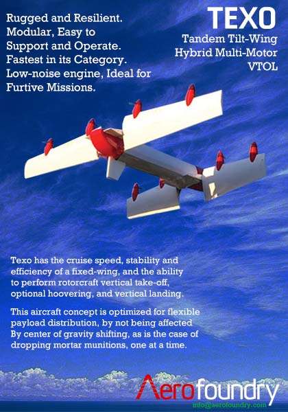 Texo is configured with eight distributed smaller engines, with higher thrust-to-weight ratio, adding safety in redundancy, while reducing cost of acquisition, service, and replacement.